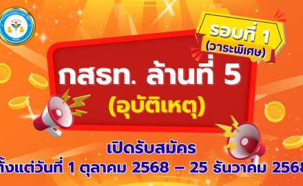 เปิดรับสมัคร กสธท.ล้านที่5(อุบัติเหตุ) ตั้งแต่วันที่ 1 ตุลาคม 2568 - 25 ธันวาคม 2568