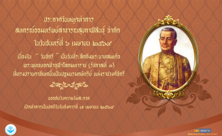 ประกาศ เรื่อง วันหยุดทำการสหกรณ์ ฯ วันจันทร์ที่ 6 เมษายน 2569 '' วันจักรี ''