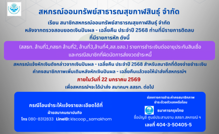 • เงินฝากจากสหกรณ์ออมทรัพย์อื่น