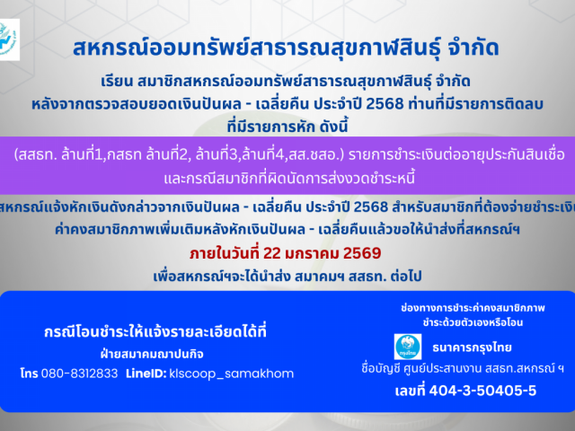 การรับสมัครสมาชิกกองทุนสวัสดิการสมาชิกสหกรณ์ออมทรัพย์สาธารณสุขไทย (กสธท.ล้านที่ 5 (อุบัติเหตุ)) ทุนประกัน ...