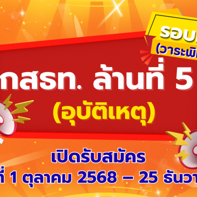 เปิดรับสมัคร กสธท.ล้านที่5(อุบัติเหตุ) ตั้งแต่วันที่ 1 ตุลาคม 2568 - 25 ธันวาคม 2568