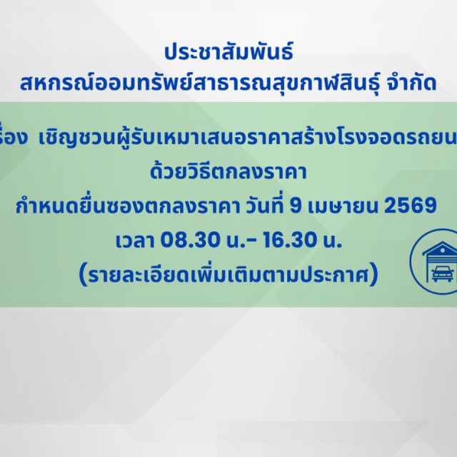 ประกาศ เรื่อง เชิญชวนผู้รับเหมาเสนอราคาสร้างโรงจอดรถยนต์ ด้วยวิธีตกลงราคา