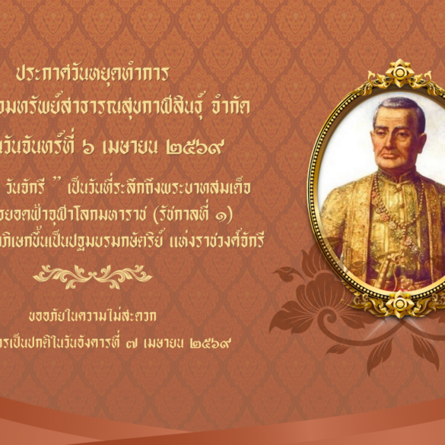 ประกาศ เรื่อง วันหยุดทำการสหกรณ์ ฯ วันจันทร์ที่ 6 เมษายน 2569 '' วันจักรี ''