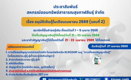 ประกาศ เรื่อง อนุมัติเงินกู้ในเดือนเมษายน 2569 (รอบที่ 2)