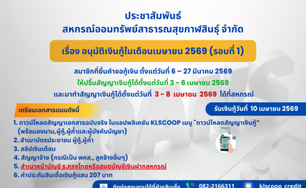 ประกาศ เรื่อง รับอนุุมัติเงินกู้ในเดือนเมษายน 2569 (รอบที่ 1)