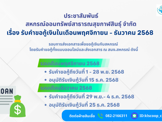 เปิดรับสมัครสมาชิกกองทุนสวัสดิการสมาชิกสหกรณ์ออมทรัพย์สาธารณสุขไทย (กสธท.ล้านที่2) ทุนประกัน 1 ล้านบาท ...