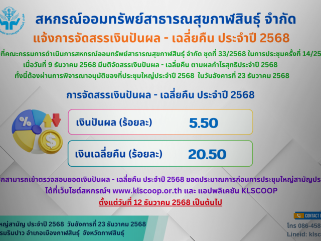 ประชาสัมพันธ์ เรื่อง การจัดสรรเงินปันผล - เฉลี่ยคืน ประจำปี 2568