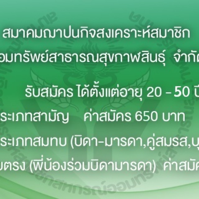 เปิดรับสมัคร สมาคมฌาปนกิจสงเคราะห์สมาชิกสหกรณ์ออมทรัพย์สาธารณสุขกาฬสินธุ์ จำกัด (ฌกส.) เปิดรับสมัครทุกวันทำการ