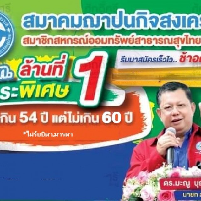 เปิดรับสมัคร สสธท.ล้านที่1 (วาระพิเศษ) ประจำเดือนธันวาคม 2568 สำหรับสมาชิกสหกรณ์ และสมทบบุตร, คู่สมรส ที่อายุเกิน 54-60 ปีบริบูรณ์