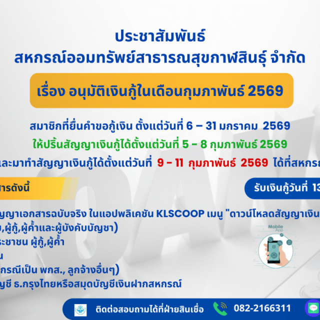 ประชาสัมพันธ์ เรื่อง อนุมัติเงินกู้ในเดือนกุมภาพันธ์ 2569