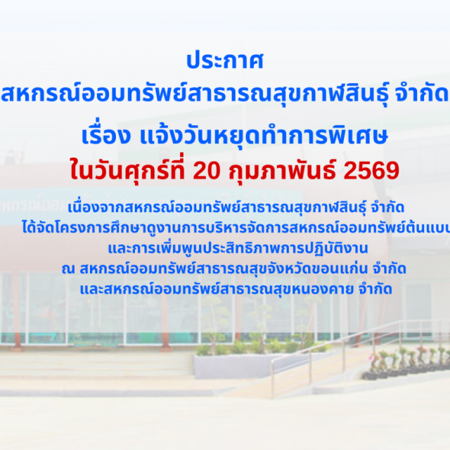 ประกาศ เรื่อง แจ้งวันหยุดทำการพิเศษ ในวันศุกร์ที่ 20 กุมภาพันธ์ 2569